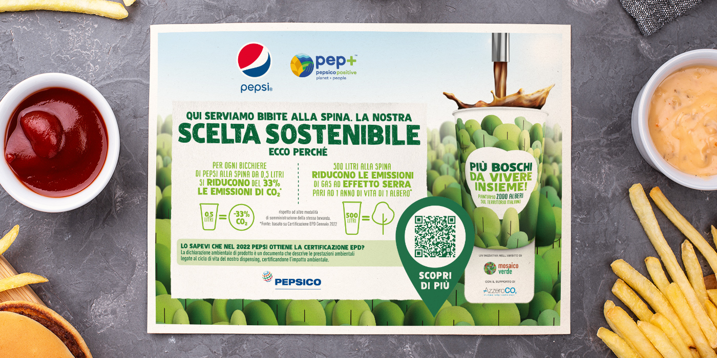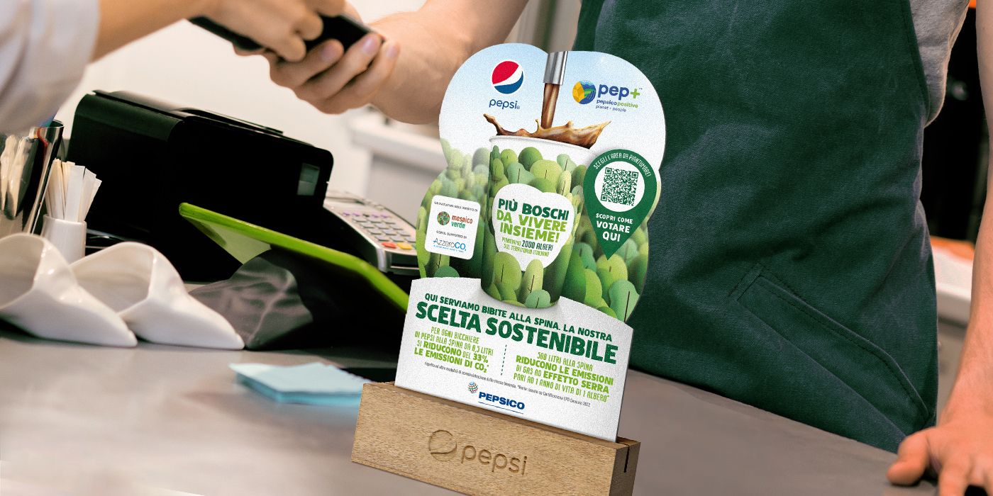 To develop a key visual that tells the story of the activity promoted by Pepsico in a clear and impactful way: the objective is to maximize the idea of sustainability related to the concept of planting trees. The creative asset has to be strong and effectively adapted in both channels and on various types of communication materials.