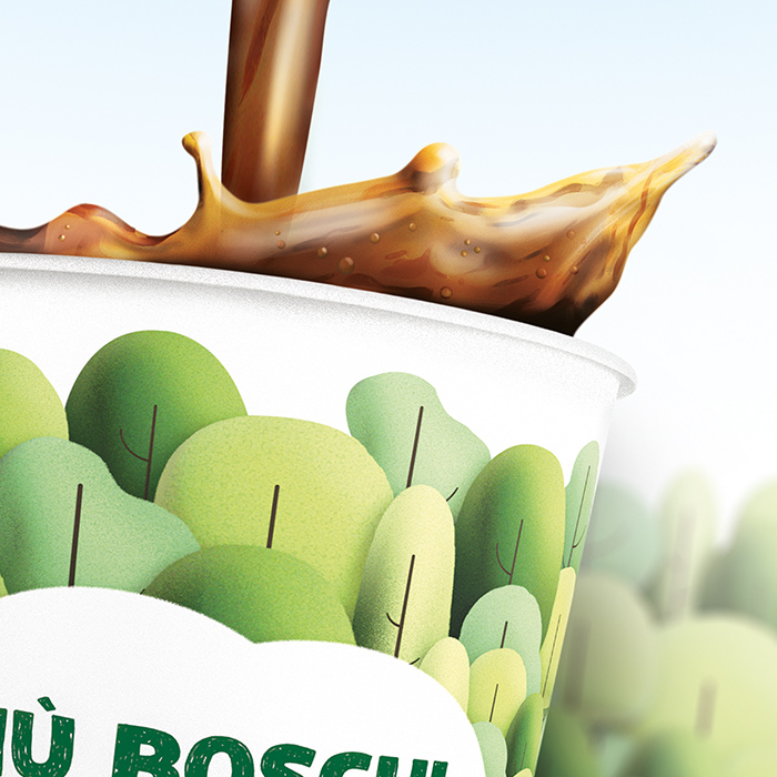 Pepsico wants to plant more trees to create more forested areas for the local community to reinforce the quality of the environment. The key visual wants to emphasize the concept of the forest and take it to its fullest expression. Trees become the real protagonists of the communication and fill all the available space, creating a very distinctive, joyful, illustrated texture.